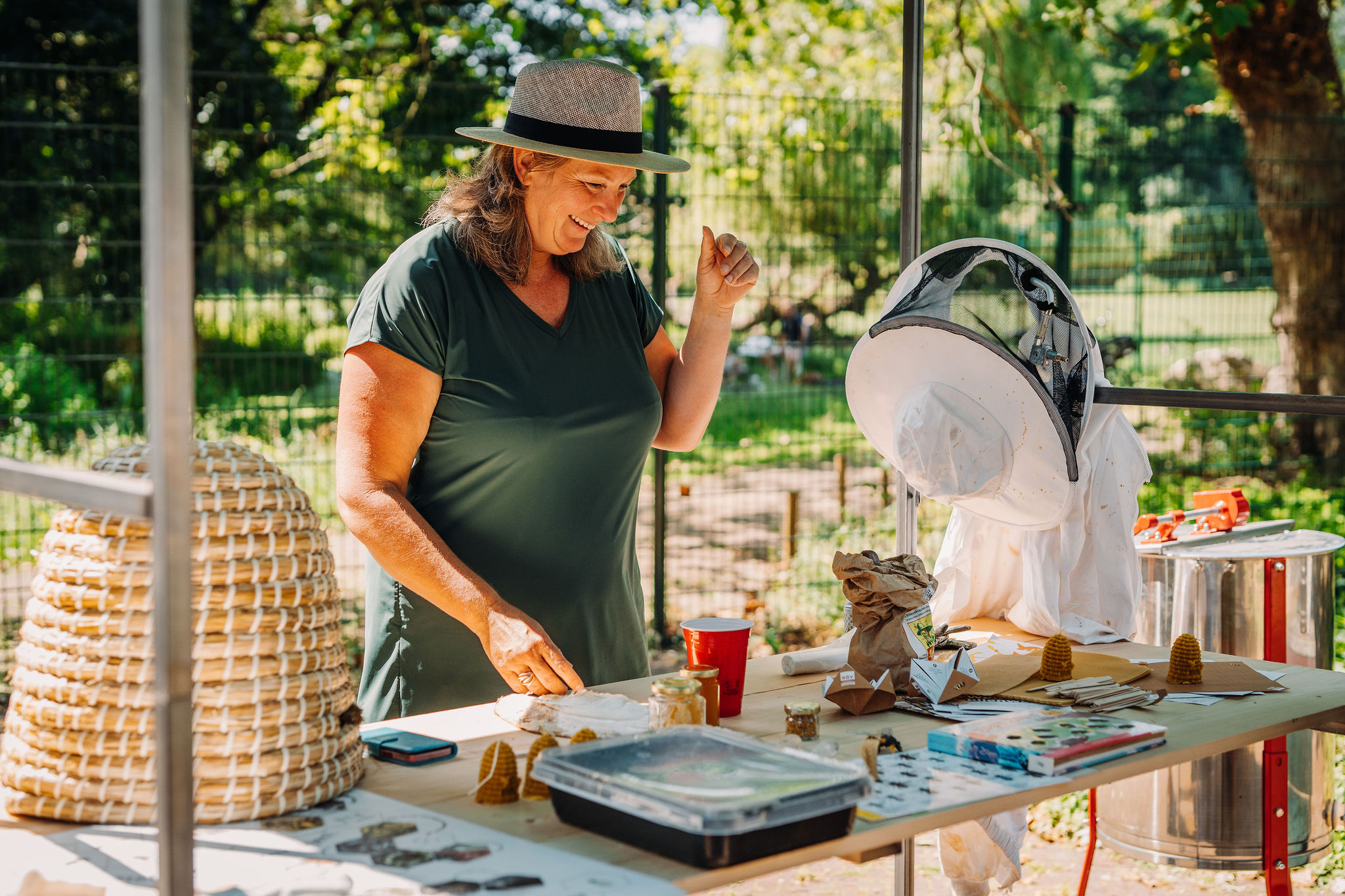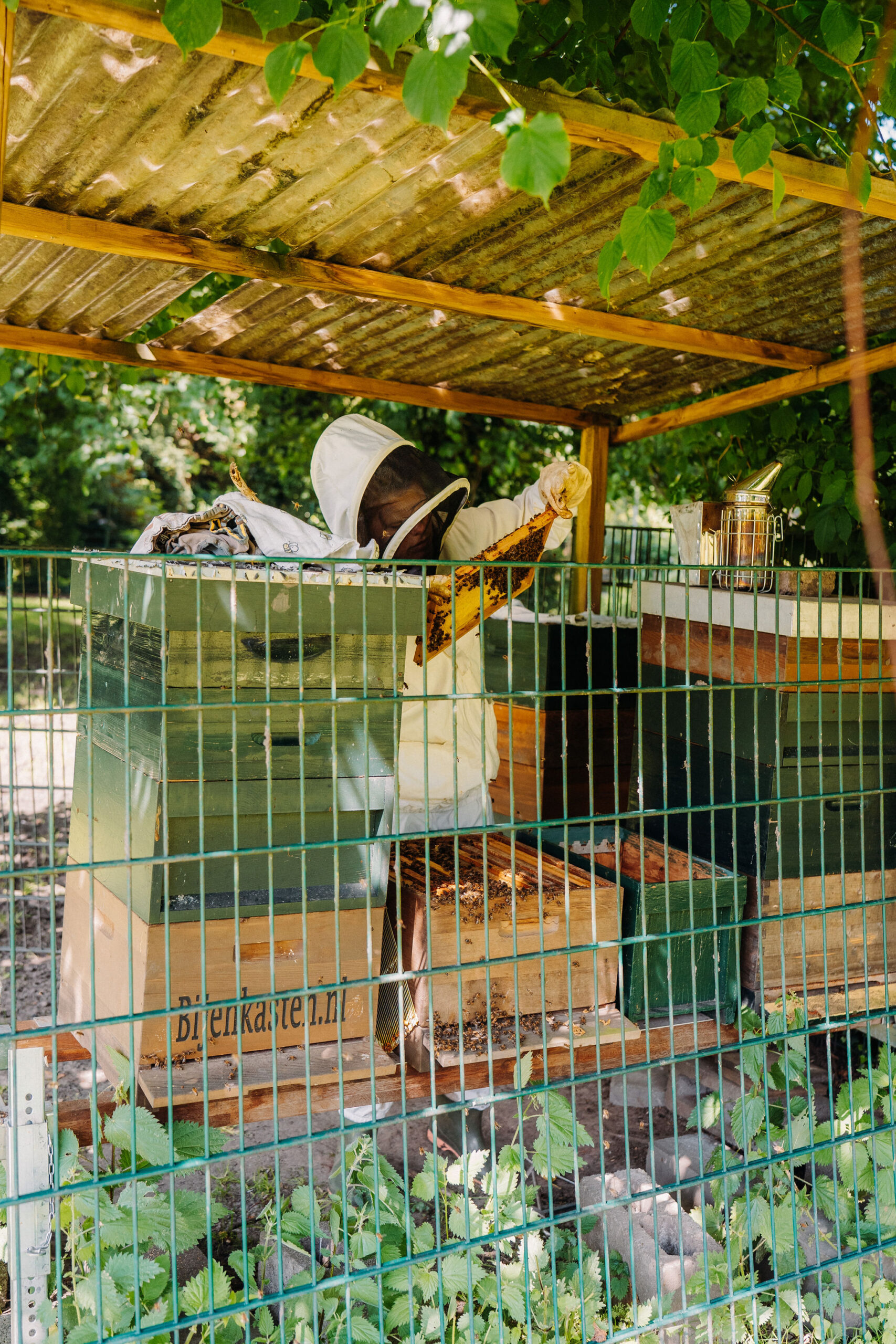 Gelegen in het prachtige Park Oog in Al in Utrecht, nodigen wij je uit om de wereld van (honing)bijen te leren kennen 🐝 Bij onze imkerij streven we ernaar om in harmonie met de natuur te werken, met aandacht voor andere bestuivende insecten, zoals wilde bijen, hommels en vlinders.