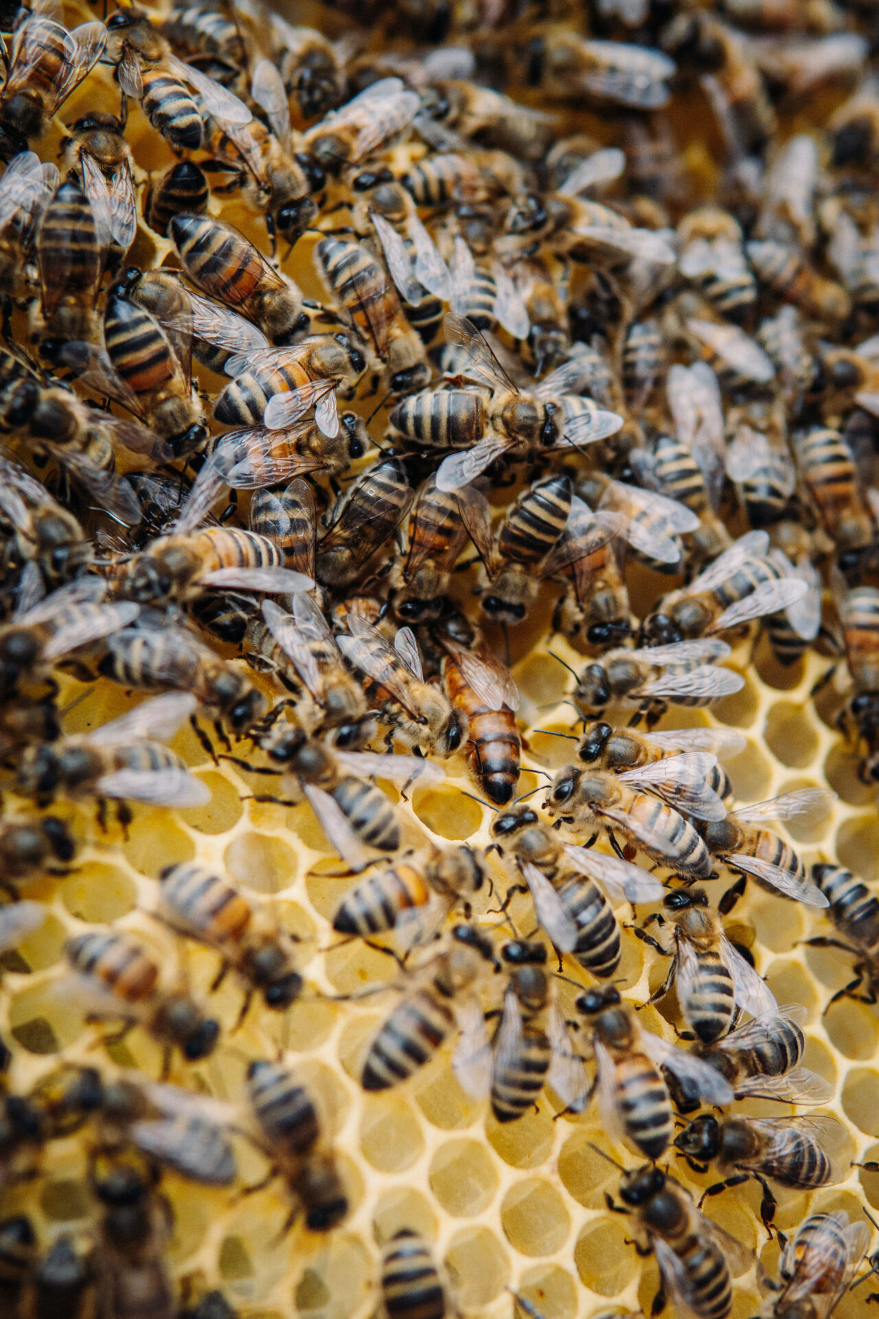 De bijen verzamelen nectar en deze slaan ze op in honingramen. Door met hun vleugels te ventileren, verdampt het vocht uit de nectar en krijgt het langzaam de dikte van honing. Als de nectar voldoende is ingedikt, plaatsen de bijen een wassen dekseltje over de cel op de honingraat.